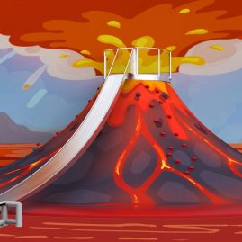 Vulkani su fascinantni, misteriozni ali i opasni, preplavljeni lavom i mirno čekaju na Zemljinoj površini ne odavajući nikome kada će eruptirati i napraviti reku vrele lave. Zbog toga koliko su opasni, vulkani još uvek nisu detaljno istraženi. Ipak, mi želimo da omogućimo deci da iskuse istraživanje veličanstniveh vulkana iz prve ruke. Velikom visinom i veličinom, naš vulkan poseduje karakteristike pravog vulkana. Izaziva decu da se popnu uz njega i spuste punom brzinom niz tobogan. Deca mogu da se takmiče sa svojim prijateljima do vrha, ko pobedi - postaje gospodar sveta.